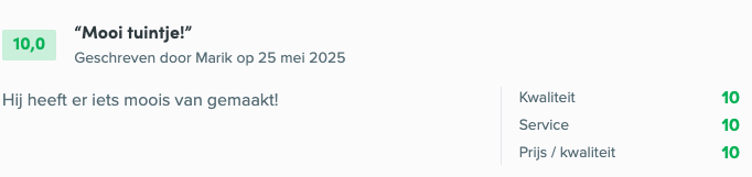 Bij ons kunt u terecht voor al uw tuinwerkzaamheden. Wij fungeren als een uitstekende partner om u te ondersteunen bij het maken van de juiste beslissingen, het houden van budget en hebben een uitgebreide kennis van producten om uw plannen te verwezenlijken.